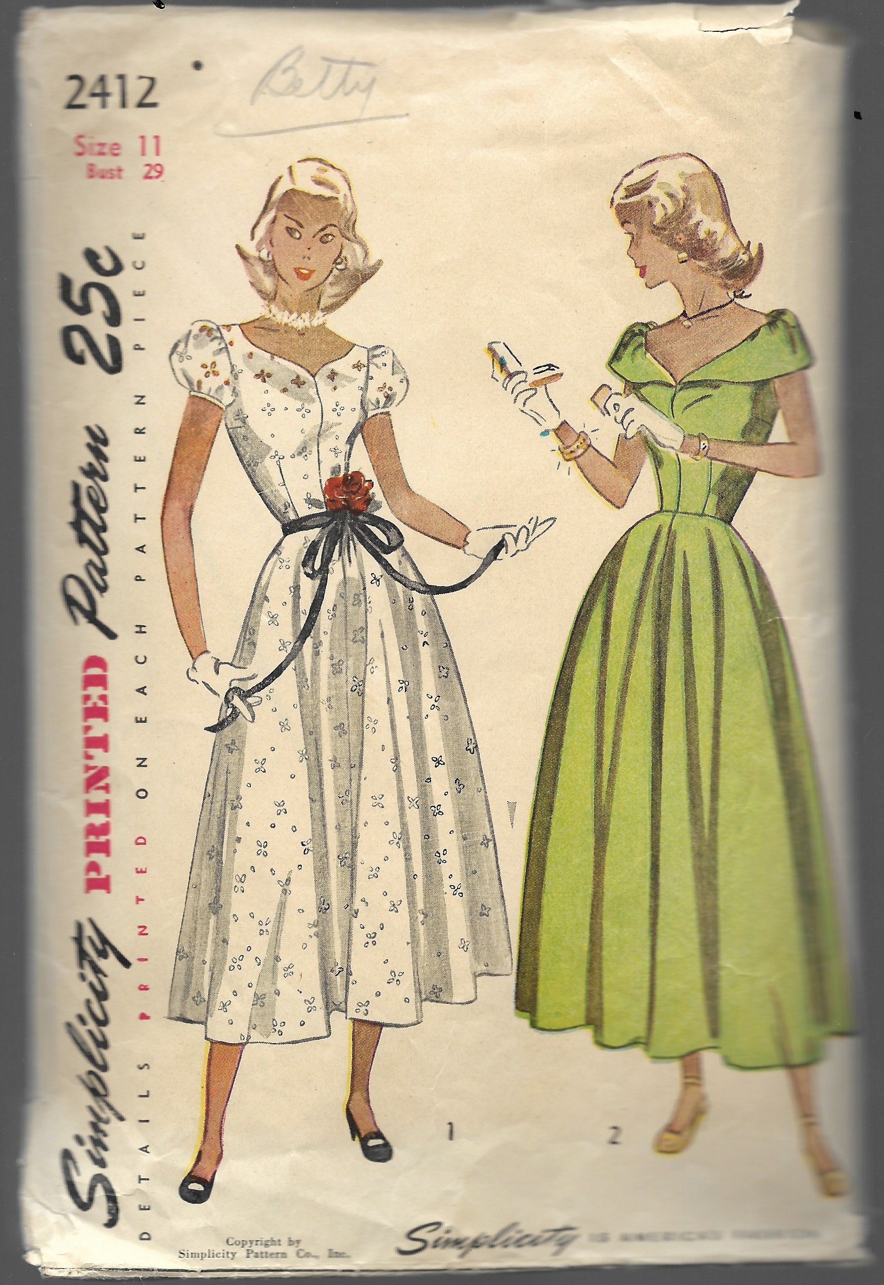 Vintage Simplicity 2412 Evening Gown Sewing Pattern 1948 Etsy